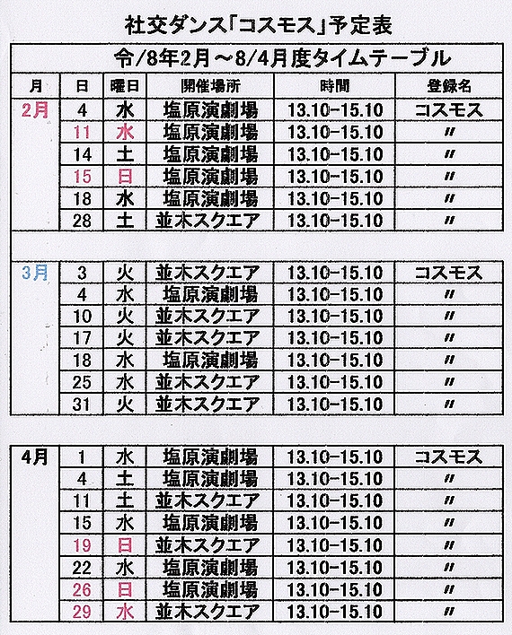 | 1) | コスモスダンスパーティー |